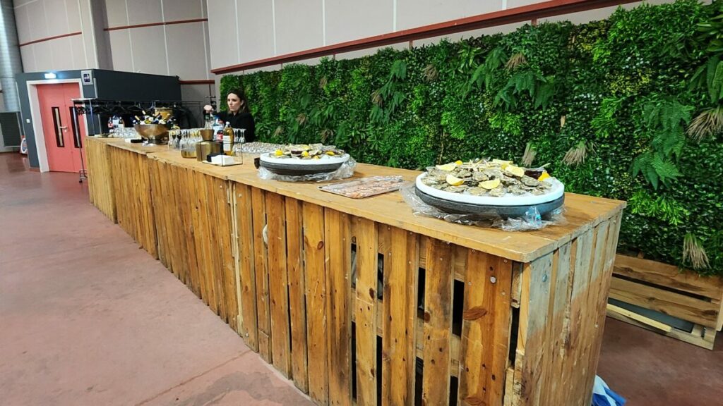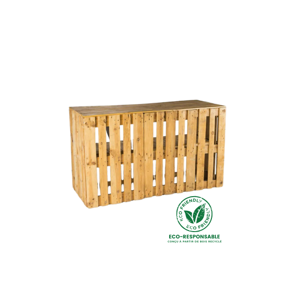 Ajoutez une touche d’authenticité et de modernité à vos événements avec notre bar en palette, conçu à partir de bois recyclé pour une démarche écoresponsable et tendance.
